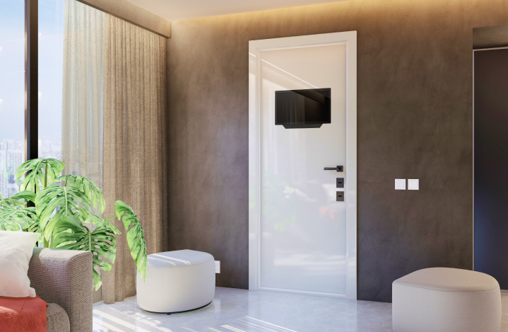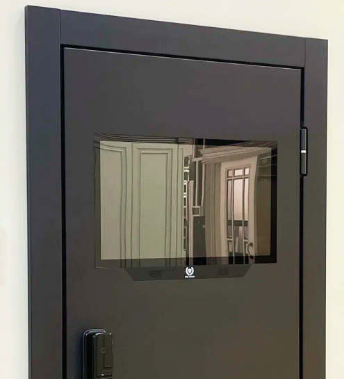 • Это умная дверь которая оснащена встроенным монитором, позволяющим вам видеть, кто находится за дверью, не открывая ее. Вы можете общаться с посетителем, не выходя из дома, и даже открыть дверь удаленно.