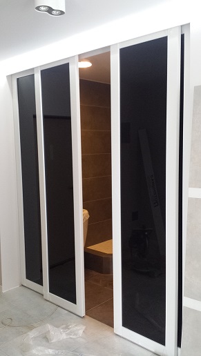 - для привнесения актуальной динамики в помещение. Чёрно-белая дверь-купе - яркое и необычное решение, и раздвижной механизм лишь подчёркивает её эксклюзивное очарование;